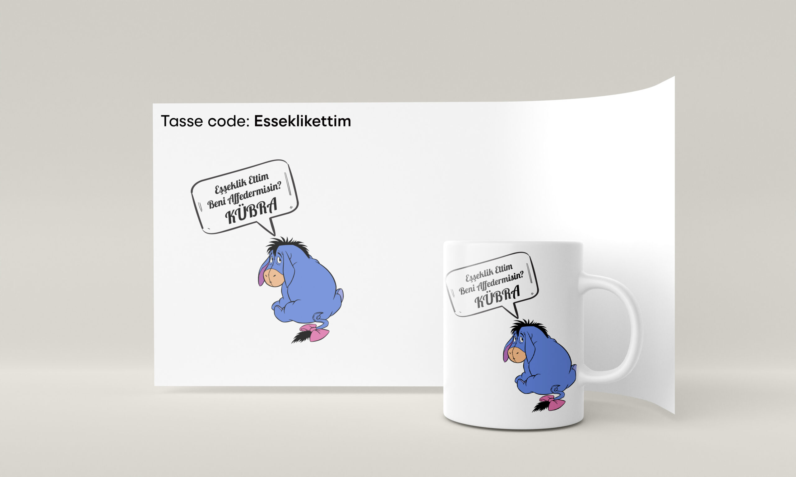 Eseklik ettim mit Wunsch Name Tasse